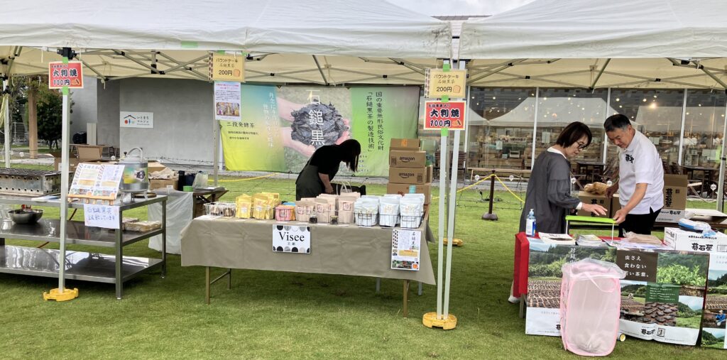Viseeブースでも、お茶工房美瀬(Visee)の新茶をご用意し試飲していただきました。「良い香りと程よい酸味があっておいしい。」「初めて発酵茶を飲んだ。香りが良く飲みやすい。」などの感想をいただきました。また、石鎚黒茶スイーツとして、生地に石鎚黒茶パウダーを練り込んだ「太鼓まん」を実演販売しました。珍しい饅頭ということで、たくさんの方々に購入していただきました。10個を追加で買われた方は、「おいしかったので、冷凍して少しづつ食べます」とお聞きし、激励されたように感じました。