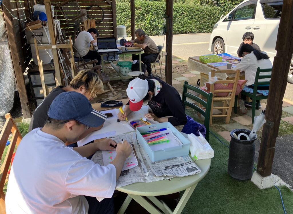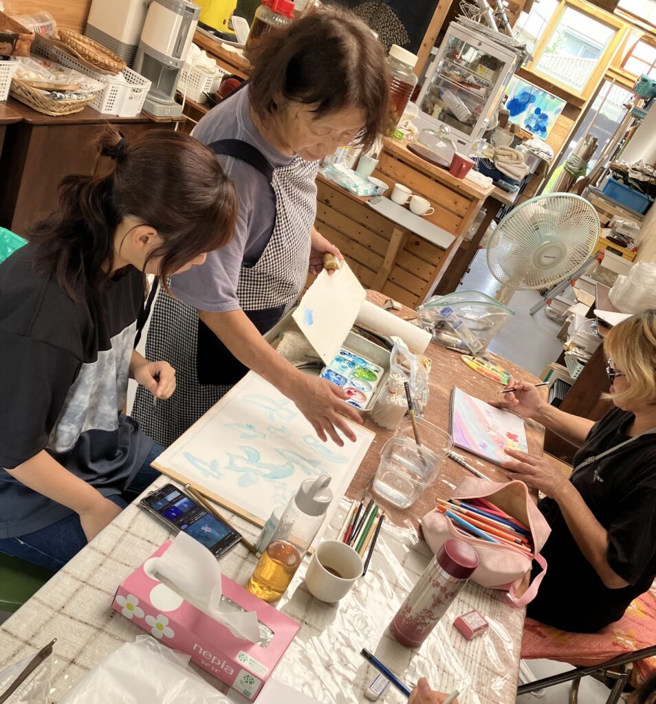 西条市氷見の「はんだま工房」において、Viseeアーティストを対象にアート教室をしていただきました。今年度、2回目となる教室では、半田正子講師から、「楽しくアート活動をしましょう」と話があり、参加した12名が、早速それぞれの題材に向かって作業を始めました。そして、個々に巡回していただき、日頃のアート活動で感じていることや改善したいところなどを伝え、分かりやすく指導していただきました。