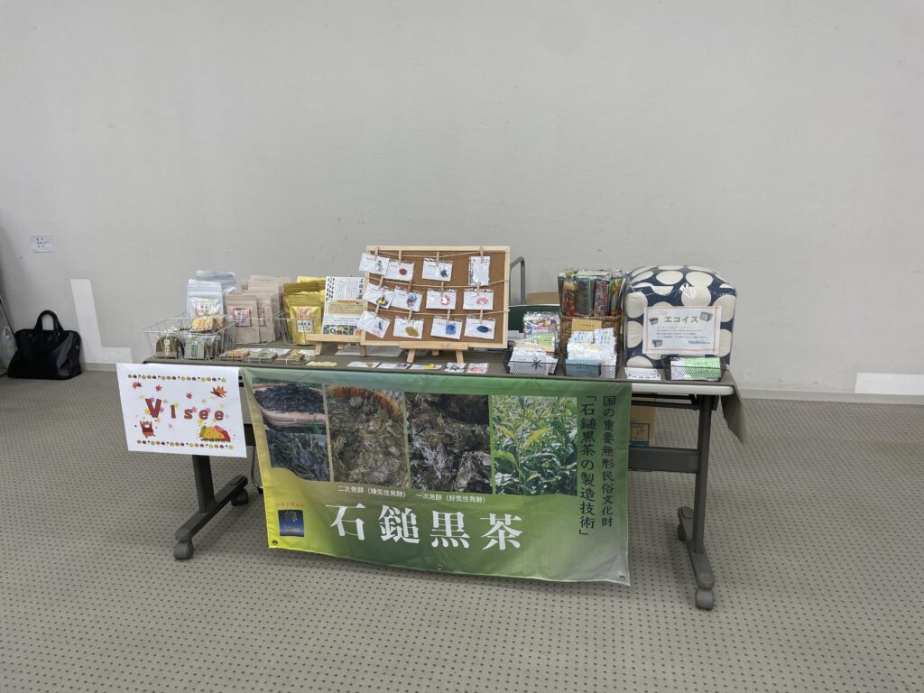 Viseeは、福祉施設等展示即売会に参加しました。販売した商品は、西条市特産の石鎚黒茶、さつまいもなどを使ったパウンドケーキ、利用者の描いたハンドタオル・ビ二コラコースター・プラバン・牛乳パックで作ったエコイスなどの雑貨です。