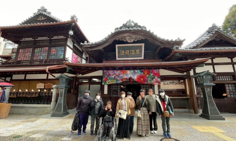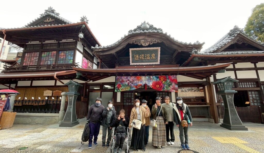 道後満喫班は、事前にインターネットでおしゃれなカフェを検索し、自分たちで予約して「道後の町屋」と「白鷺珈琲」というお店に分かれて早めのランチを摂りました。「道後の町屋」では、大きなとんかつ・チキン・アボカドの乗った豪華なハンバーガーやラテアートされたカフェオレなど素敵なランチをいただきました。「白鷺珈琲」では、大人のお子様ランチやチーズドリアをいただきました。内装もおしゃれで道後の街並みが見えるカウンター席で優雅な時間を過ごしました。その後、飛鳥の湯や圓満寺の写真映えスポットに行き、写真を撮ったり、ジブリやリラックマのお土産屋で買い物をしたりして、可愛いが詰まった時間を楽しみました。みんな笑顔で観光やお買い物の時間を過ごせてよかったです。
