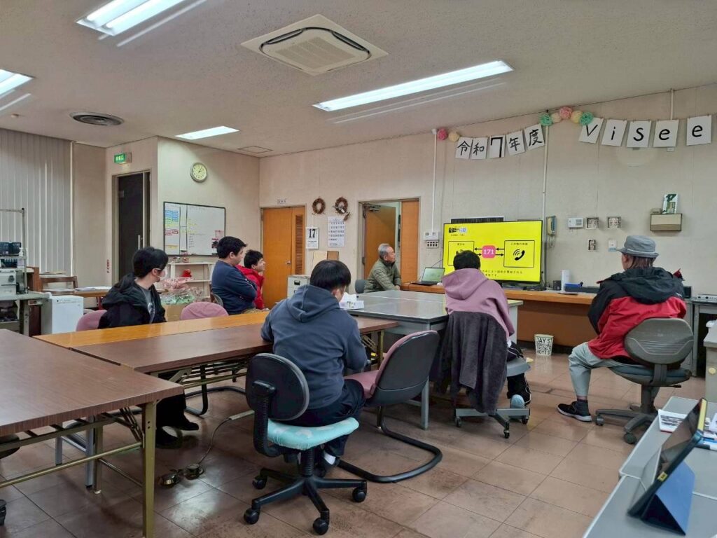 同じくViseeこまつも、避難訓練を実施。「地震発生の後、台所から火災が発生した」との想定で、地震直後の身の安全の確保から屋外退去など、避難手順を実際に行動して確認しました。その後、防災関連の動画や行政が発信するQ&Aクイズなどで楽しく防災を学びました。