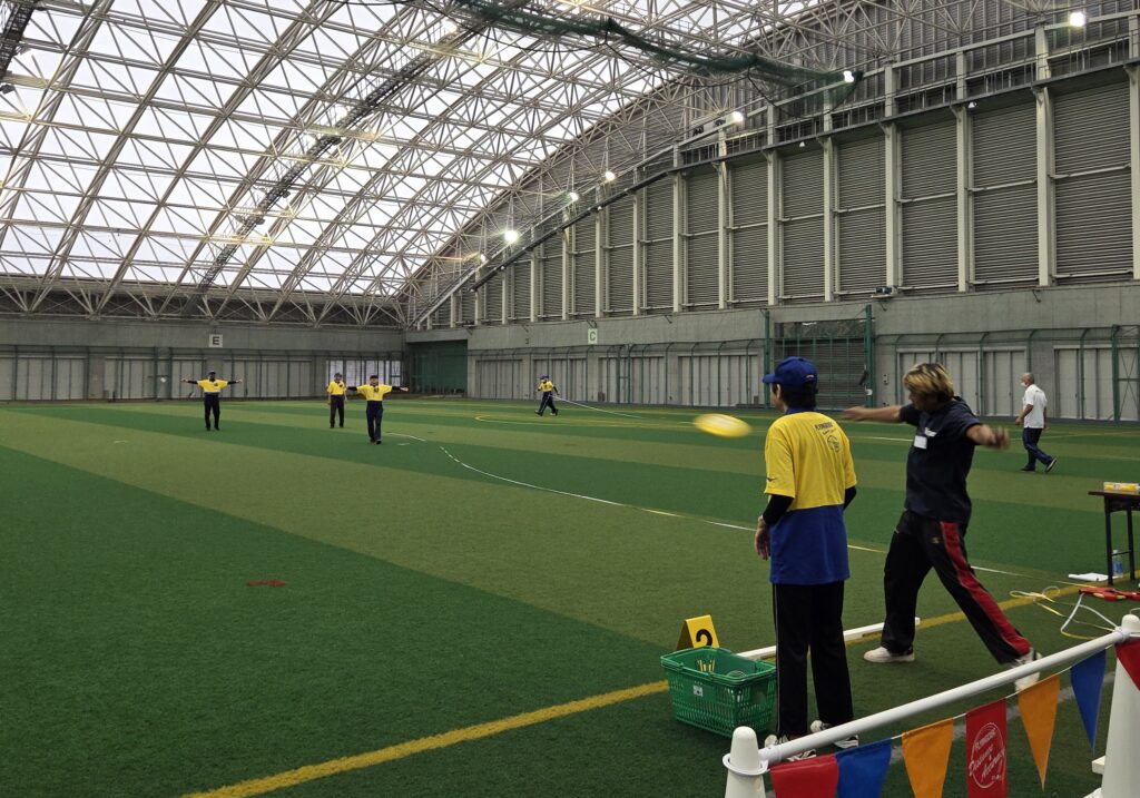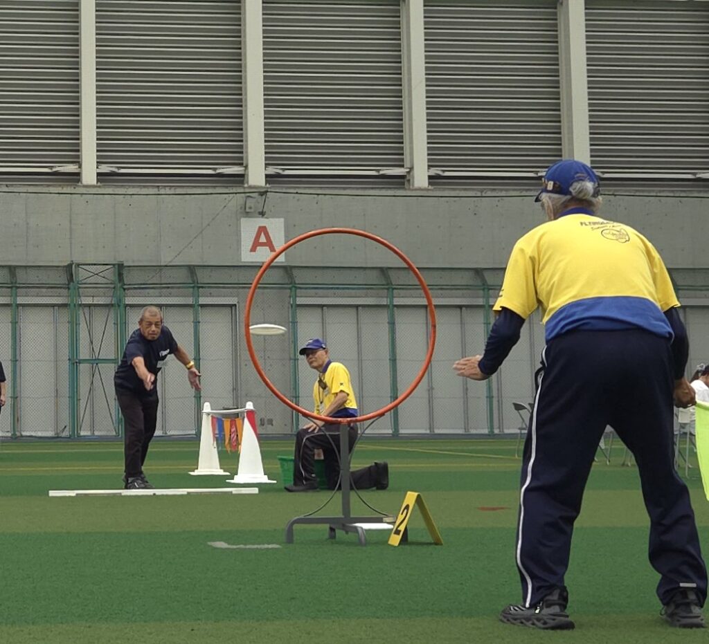 午前は5m離れた的にディスクを投げて、入った合計枚数を競うアキュラシー、午後はディスクの飛距離を競うディスタンスが行われました。